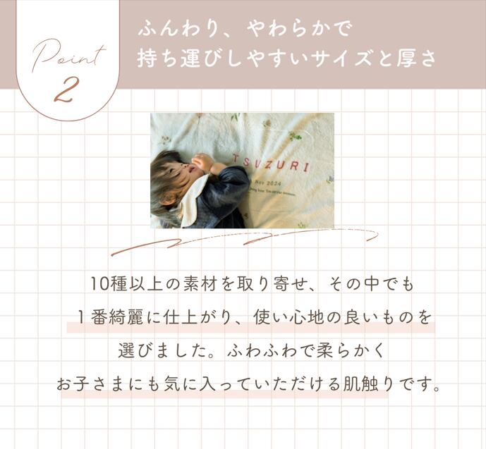 ひざかけやお昼寝用、ベビーカー用としてもお使いいただけます。