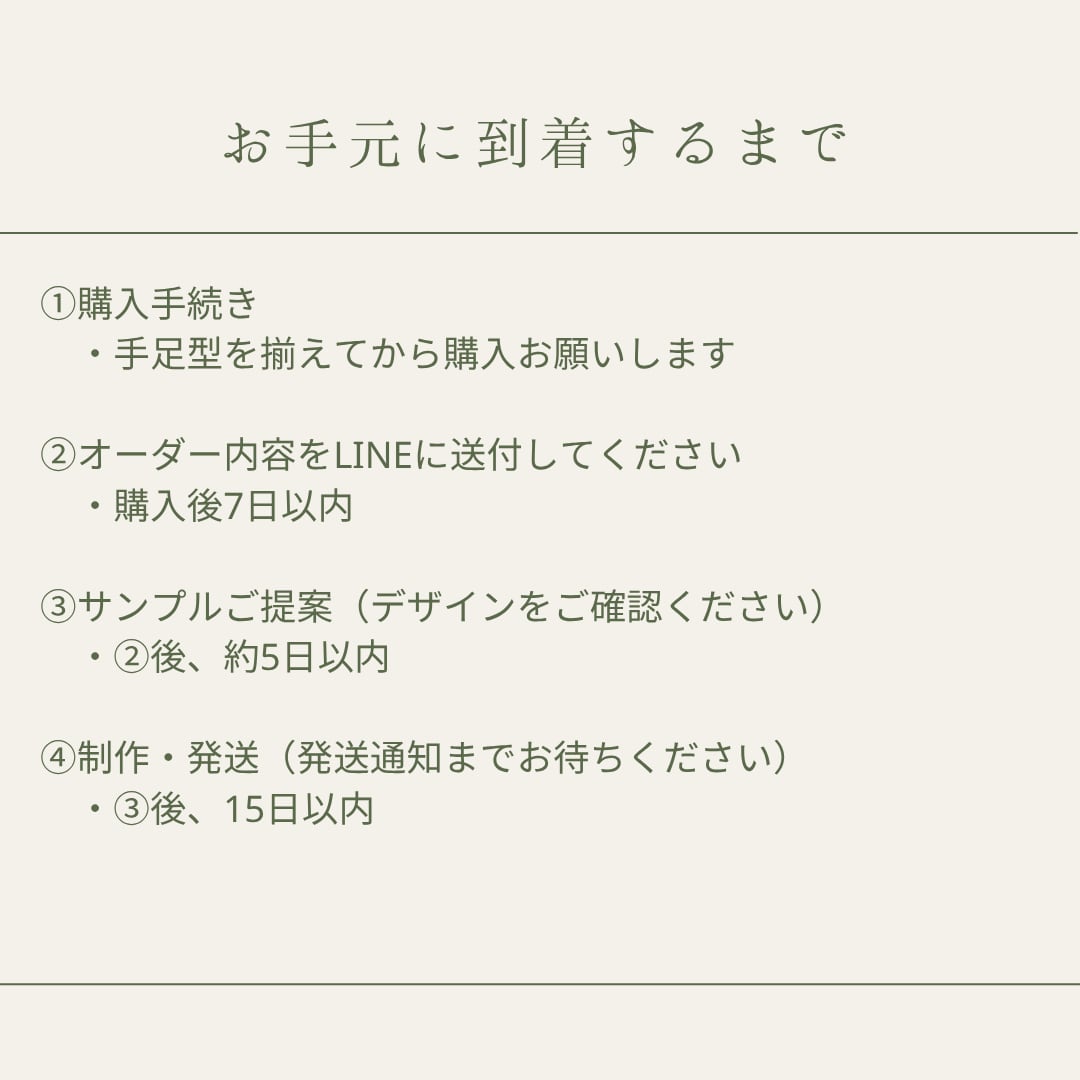 注文内容と手足型をお送りください。